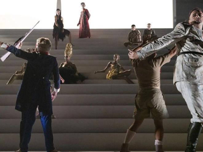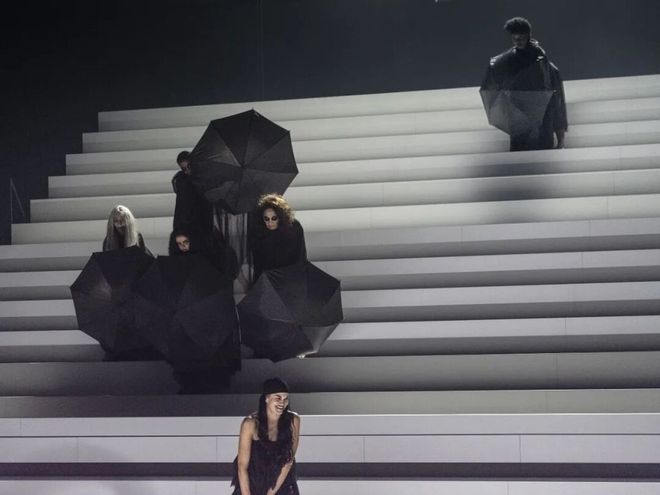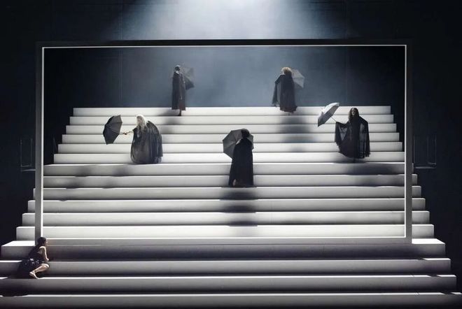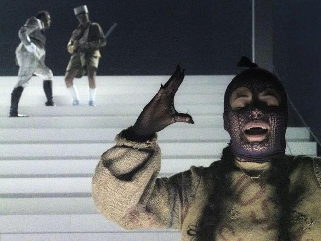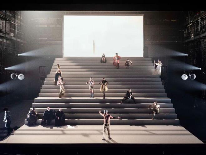 四个小时的演出时长,舞台上巨型阶梯如权力金字塔般耸立,演员如蝼蚁般攀爬坠落,亡者的嘲讽与生者的挣扎交织并置——这是一场关于殖民暴力、身份背叛与叙事争夺的荒诞祭仪,更是一面映照未愈历史伤痕的明镜。