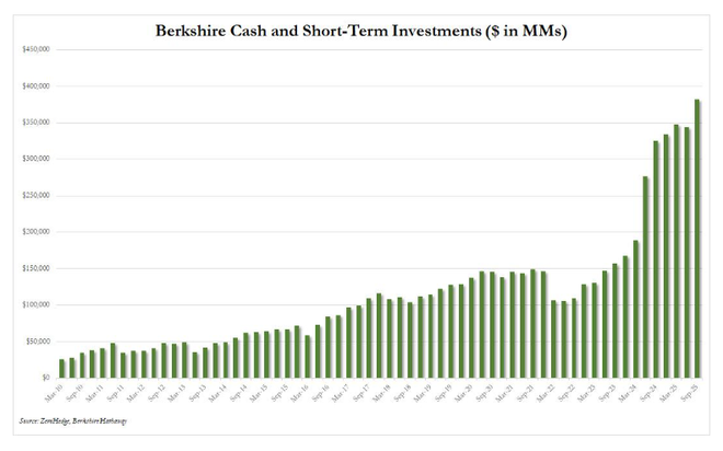 95岁的巴菲特准备卸任交棒之际,伯克希尔·哈撒韦的现金储备正在创下新历史新高——3820亿美元。