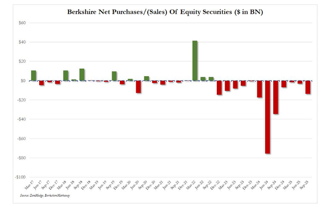 而这一数字的背后是公司的持续抛售。过去三年,伯克希尔已累计净卖出约1840亿美元的股票,仅在第三季度就再度抛售了价值61亿美元的普通股。