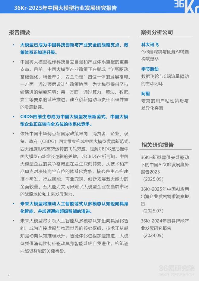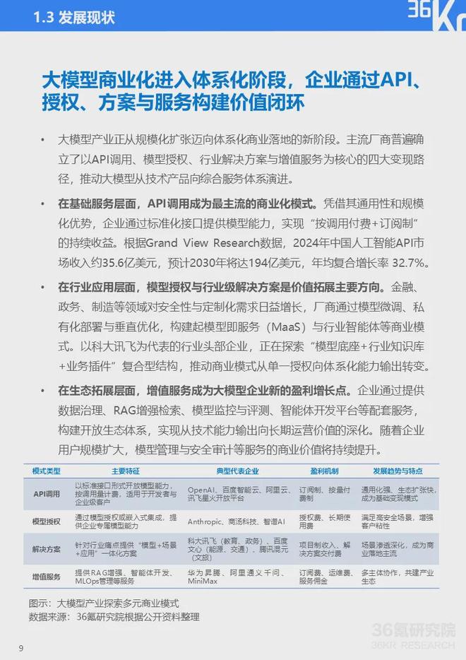 2025年中国大模型行业发展研究报告发布,揭示行业趋势与前景展望——来自36氪研究院的深度研究