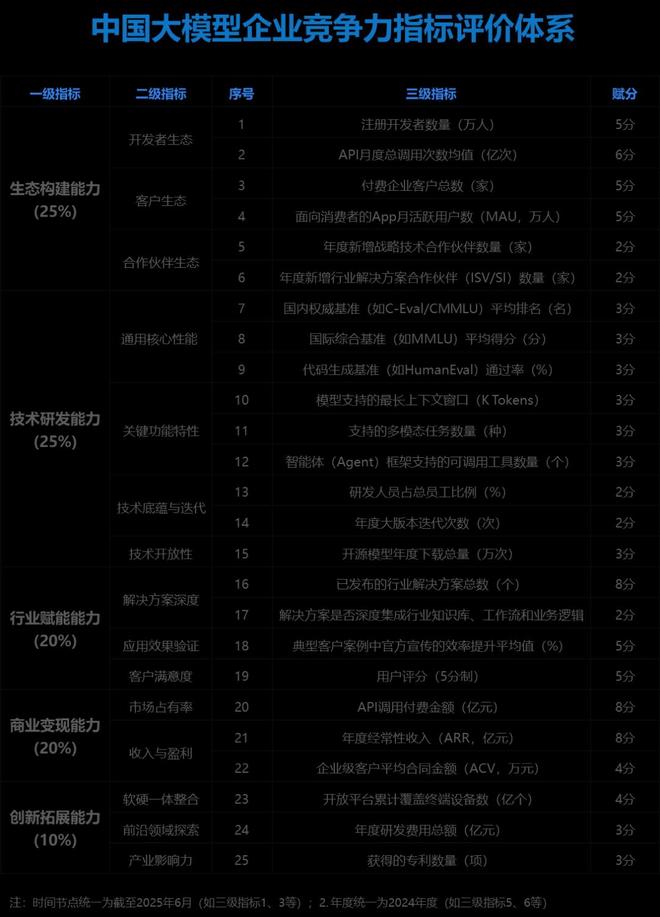 依托中国市场特点与国家政策导向,消费者、企业、设备、政府(CBDG)四大维度构成中国大模型发展新范式。四大维度形成高效运转的飞轮效应,理解CBDG是把握中国大模型市场增长逻辑的关键。以CBDG分析可知,中国大模型企业的竞争格局正在发生深刻转变,从技术和产品单点对决转向全方位的体系化竞争,核心是生态构建、技术研发、行业赋能、商业变现、创新拓展五大能力的全面较量。五大能力共同界定了大模型企业在当前市场的战略地位和未来发展潜力。