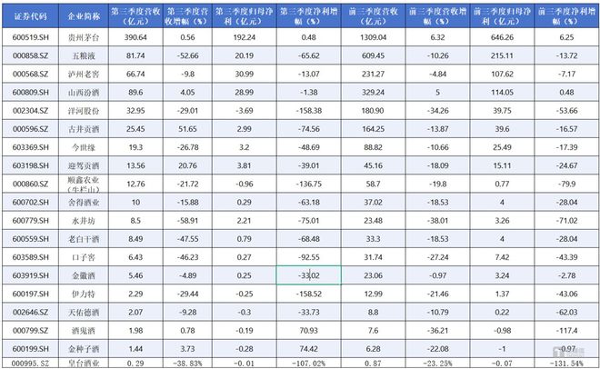 三季度近乎“团灭”,多数酒企陷断崖式下滑