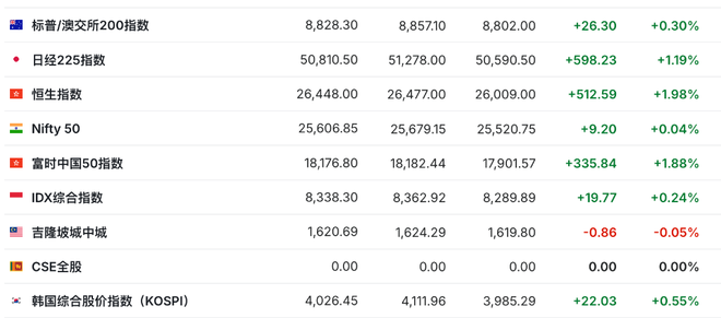 随着科技股估值担忧有所缓解,亚洲股市跟随隔夜美股涨势反弹,日经225指数涨1.19%。随着美股指期货走低,乐观情绪减弱,反弹势头有所收窄。