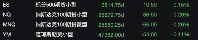 - 美股指数期货集体走低,标普500期货跌0.15%,纳斯达克100期货跌0.26%,道琼斯期货跌0.11%