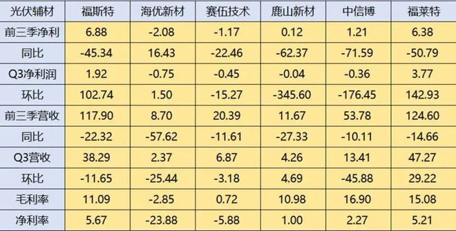 协鑫科技第三季度光伏材料业务利润约为9.6亿元(其中包括出售一家联营公司产生的税后出售收益约6.4亿元),与去年同期公司光伏材料业务亏损约18.1亿元;通威股份第三季度同环比大幅扭亏;大全能源三季度盈利了7300万。