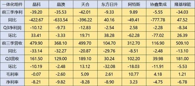 隆基减亏也比较明显,如果去除隆基绿能计提大量资产减值,三季度可能实现接近盈亏平衡。TCL中环的亏损也环比有所好转。