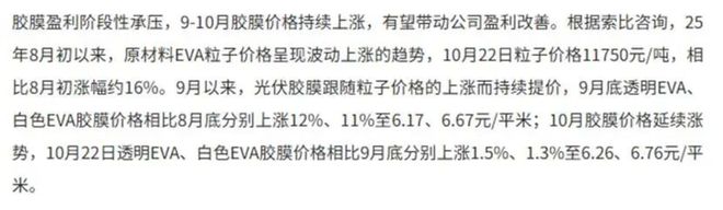 辅材中胶膜产业链三季度为其“至暗时刻”,随着三季度阴霾散去,产业链价格出现明显回升,确认了2025年三季度为其至暗时刻的看法。
