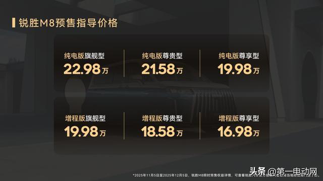 作为北京汽车制造厂孵化的独立MPV品牌,锐胜汽车持续深耕MPV细分市场,敏锐洞察用户未被满足的真实需求与市场空白。锐胜M8的推出,为用户提供了更全面的选择,进一步提升了出行的品质与体验。目前,锐胜M8预售已经开启,能否获得市场青睐,我们拭目以待!