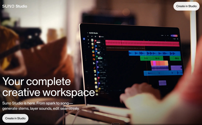 几乎与V5模型发布的同时,2025 年 9 月,Suno 发布了桌面应用 Suno Studio,号称全球首个“生成式音频工作站”。