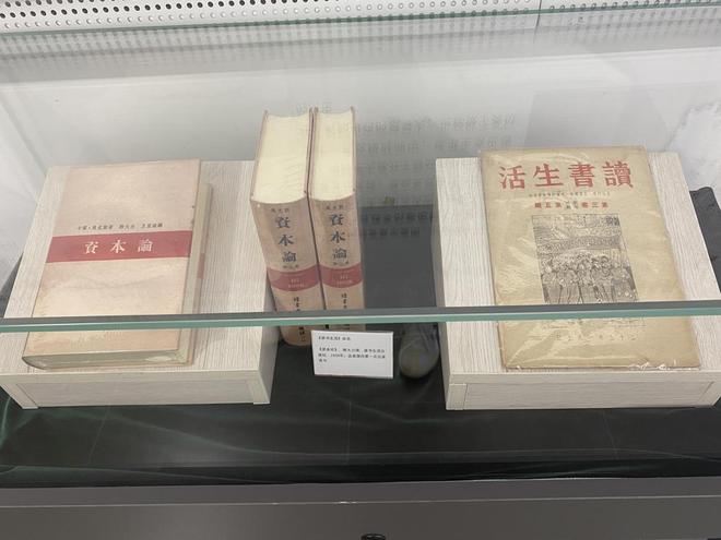 《读书生活》杂志的第三卷、第五期“青年特辑”,以及《资本论》1938年一版一印三卷本实物。 2022年9月,记者王诤摄于北京美术馆东街22号的三联韬奋书店内举办的“庆祝生活·读书·新知三联书店成立90周年”特展上。