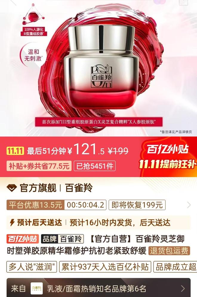 老牌国货百雀羚的一款精华霜,也在详情页明确标注针对“抗初老”。