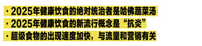 哈佛大学公共卫生学院发表的“Superfoods or Superhype”一文中指出,21世纪超级食物的出现速度加快,其背后包含科学研究、抓人的新闻标题以及食品行业的营销活动等多重因素。