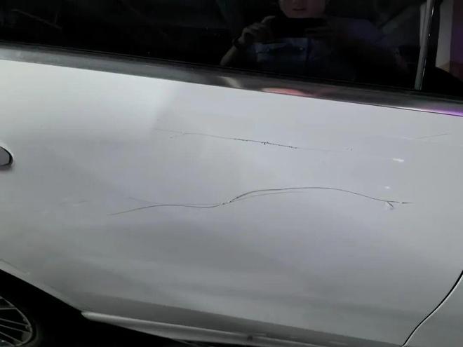 ▲陈女士的车被划伤 图据“平安武汉“公众号