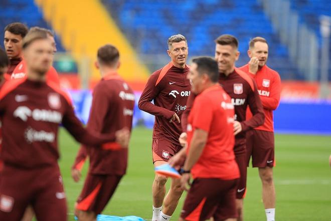 莱万多夫斯基(中)参加赛前训练,有望首发。
