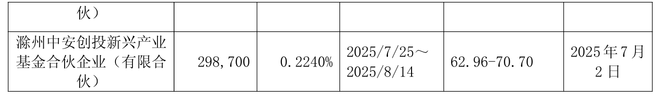 值得一提的是,若两股东按照计划上限进行减持,其持股比例将降至零。截至公告披露日,合肥中安、滁州中安的执行事务合伙人均为安徽云松创业投资基金管理有限公司,二者构成一致行动人,合计持有公司股份350.91万股,占公司总股本比例为2.6320%。