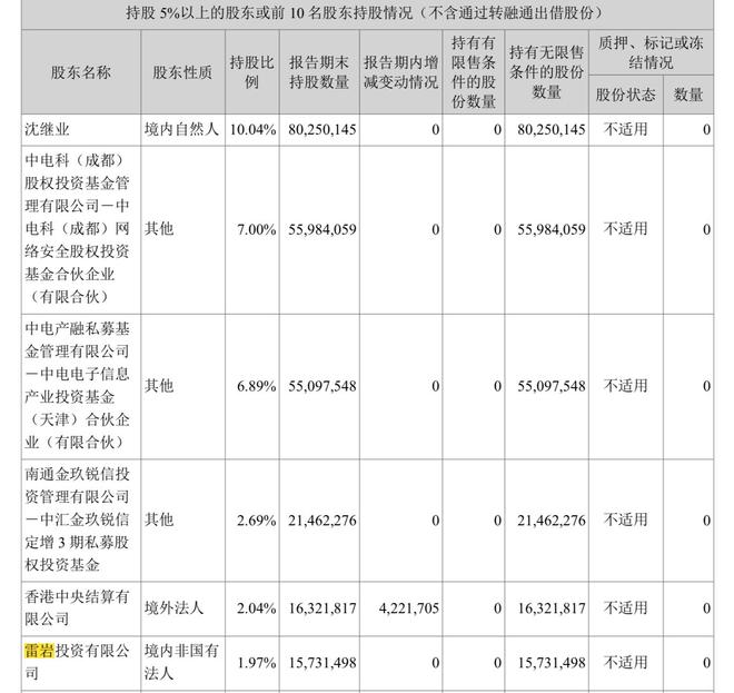 8月27日晚间,绿盟科技发布2025年半年度报告。雷岩投资以1.97%的持股位列公司的前10名股东名单的第六位。