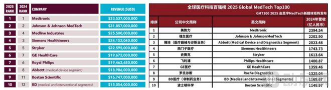 近期,海外医疗器械平台Medical Design &Outsourcing发布《2025年全球医疗器械公司百强榜》,而思宇MedTech此前也公布了《2025 全球医疗科技百强榜(GMT100)》。
