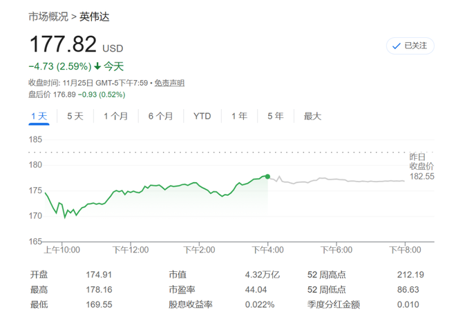 这一消息犹如一颗重磅炸弹,瞬间引爆市场。在当日的市场交易中,英伟达股价一度暴跌6%,其竞争对手AMD股价更是下挫10%。与此同时,谷歌母公司Alphabet股价则一度跃升4%。当日英伟达最终收跌约2.6%,而Alphabet则逆市收高1.6%,连续创下历史新高。