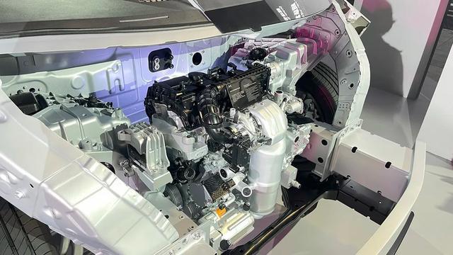 为了保证更长的综合续航,就需要从油箱的容积来考虑,同时,还需要考虑的因素,是增程器的热效率,以及如何降低能量在传递过程中的损耗。由此,新车选择的东安第三代1.5T增程器,从技术维度看,这台增程器采用了增压中冷、深度米勒循环等技术,支持92号汽油,说明其在缸径和行程上,较上一代做了大幅优化,不再依赖高辛烷值汽油自身的燃烧特性,来解决窄长缸体燃烧不充分导致的爆震和高油耗等问题。