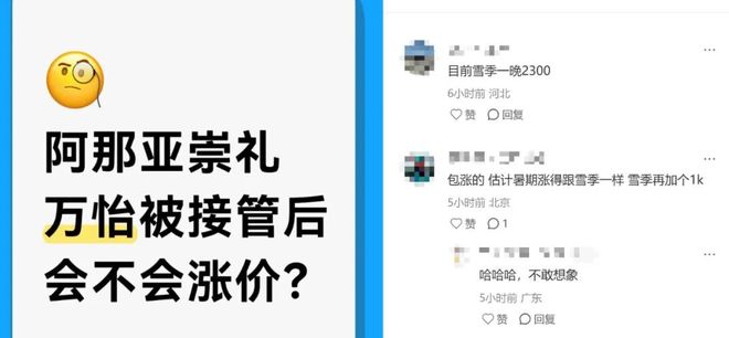 如果今年雪季万怡真的涨价了,那其他阿那亚自有民宿、酒店是不是也要跟着一起涨,作为游客得多花多少钱去订房订产品?这不是摆明要被多"割"一刀肉吗?