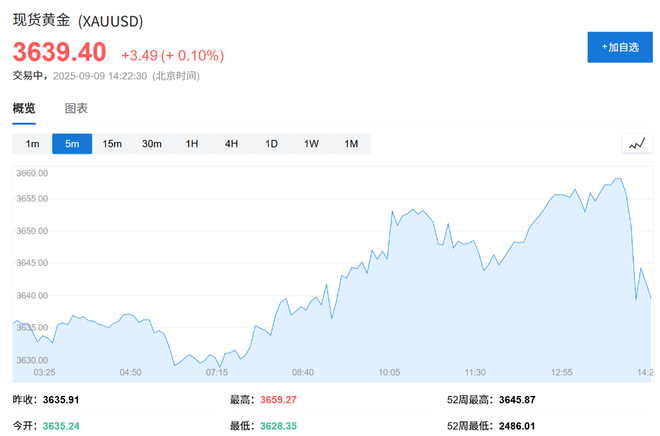 - 现货黄金涨0.1%,报3639.16美元/盎司。