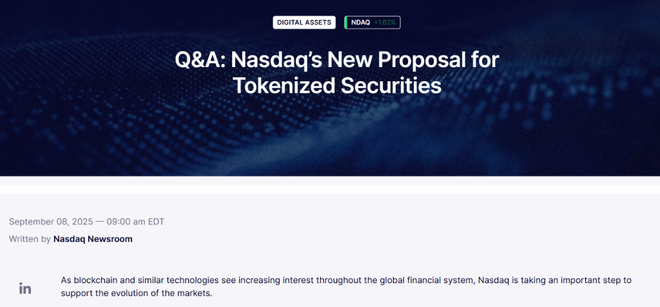 纳斯达克力推代币化证券,首次获准在美国主要交易所交易开启新篇章