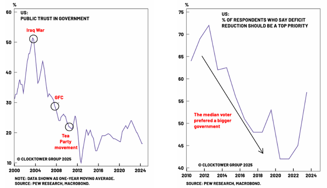 知名地缘策略研究机构Clocktower认为,美联储在美国历史上从未真正独立过。投资者所谓的“独立性”,更多只是20世纪80年代以来,央行反通胀取向与新自由主义政治共识之间的一次短暂契合。如今,随着美国社会的主导意识形态由新自由主义转向民粹主义,美联储随之而来的政治再调整几乎不可避免。