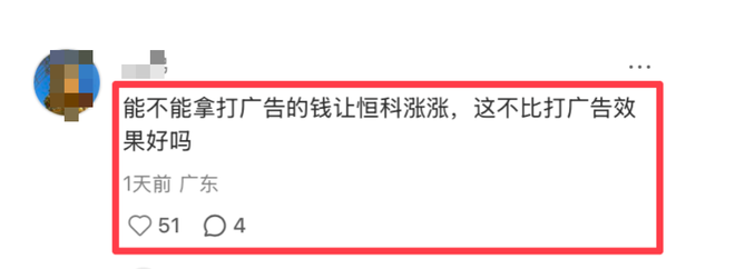 凤凰网财经《投资观察》注意到,有一些网友对大成基金打广告的行为表示质疑:“能不能拿打广告的钱让恒科涨涨,这不比打广告效果好吗?”此评论引发了众多网友的点赞。