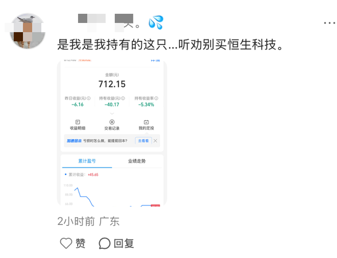 许多网友跟帖评论称,该基金最近跌跌不休。有持有人晒出自己亏损超过5%的实盘收益截图,还有持有人表示:“无语死了,回本我就抛,必拋。”
