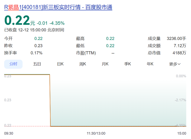 目前,紫晶存储股票在新三板交易,最新市值仅剩4188万元。