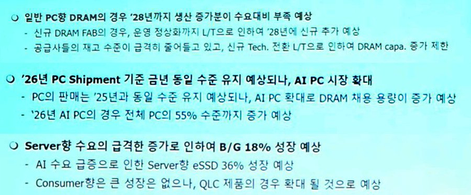 该公司还在建设包括M15X和计划于2027年上半年开工的龙仁晶圆厂在内的先进生产基础设施,以确保"晶圆厂空间"和"产能"满足AI存储日益增长的需求。