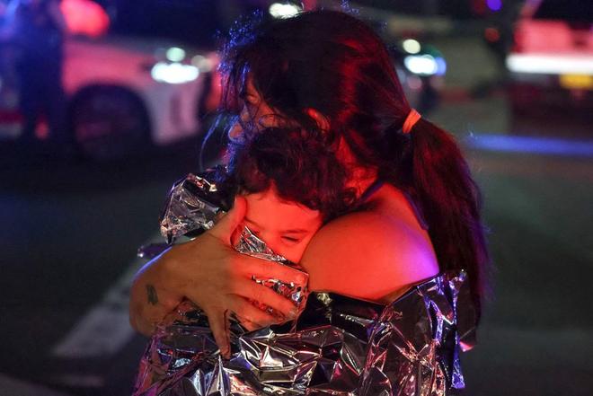 12月14日,澳大利亚悉尼邦迪海滩,女子在枪击事件后抱着裹在毯子里的婴儿。