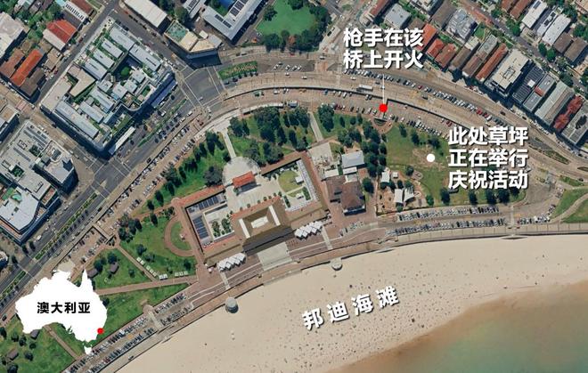 袭击发生于当地时间14日晚间,当时有上千人正在邦迪海滩参加犹太社区节庆活动。两名枪手在附近一座桥上,使用长枪向密集人群射出数十发子弹,导致重大伤亡。警方在枪手位于悉尼的住所中还发现了两个未引爆的“基础爆炸装置”。警方确认不存在第三名嫌疑人。