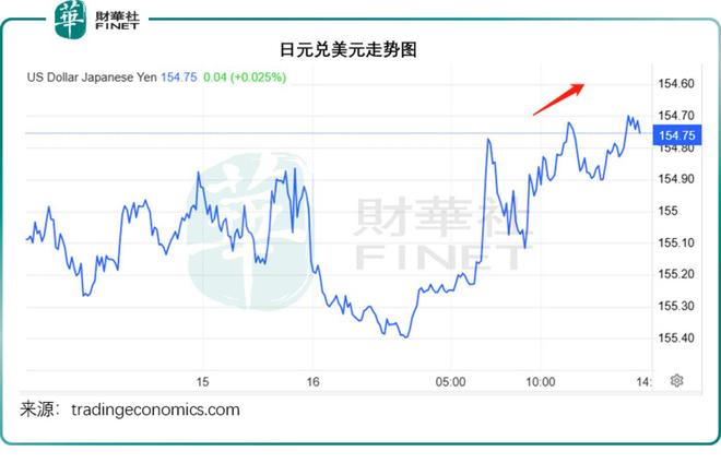 其中美元兑日元的跌幅最大,见下图,日元兑美元汇价走强突破155水平,现报154.75。