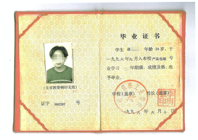 ▲赵先生的毕业证书