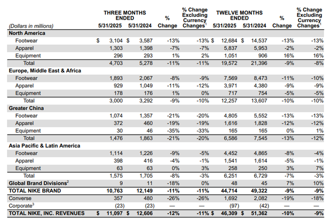 业绩大跌仍超机构预期,便是耐克2025财年尴尬又不失礼貌的真实写照。