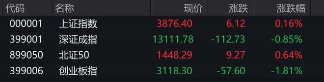 12月18日,A股市场早间走势分化,截至午间收盘,沪指涨0.16%,深成指跌0.85%,创业板跌1.81%。盘面上,指数黄白二线分化,个股涨多跌少,沪深京三市超3600股飘红,上午半天成交1.06万亿。具体来看,商业航天概念再度爆发,中国卫星、上海沪工等多股涨停。AI医疗概念走势活跃,华人健康、塞力医疗等封板。零售、IP经济等消费股拉升,百大集团6连板,德艺文创等涨停。下跌方面,券商股高开低走,中银证券、中信建投跌超3%。以下是核心指数情况: