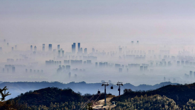 前些日子,陈璞在同事拍摄的一张照片里,看到了南昌的另一番模样。11月30日,南昌梅岭云端索道开通后,她的同事在山顶拍到了“海市蜃楼”般的城市影像。照片里,南昌的楼宇在云涛中若隐若现,天际线与自然交融,是难得一见的飘逸与壮阔。