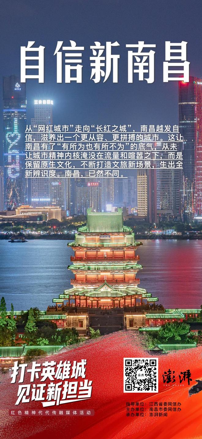 又是两年过去,如今的南昌,文旅吸引力依然延续,从“网红城市”走向“长红之城”,聚集而来的人气,让这座城市越发自信,滋养出一个更从容、更拼搏的新南昌。