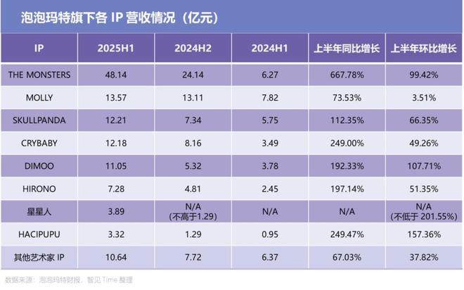 星星人的营收很快涨到了上半年的 3.89 亿。按照增长率最低估算,星星人环比增长至少有 201.55%,这个速度已经远超泡泡玛特当家花旦 Labubu 的 THE MONSTERS。