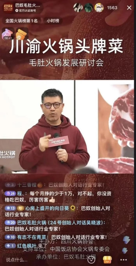 而杜中兵直播时那句“月薪5000你就不要吃巴奴”、“火锅不是给底层人民吃的”等争议言论,虽然意在强化其“品质升级”定位,但也引发了脱离消费者的批评,和巴奴的名字来源,“纤夫精神”的文化溯源形成了反差。