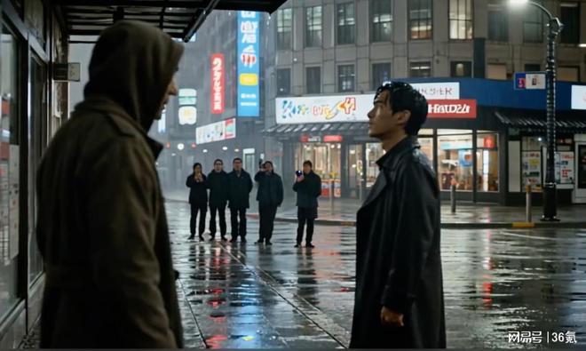 - 提示词:一个男人站在雨中的街头,他穿着黑色风衣,雨水顺着他的脸往下流。他慢慢抬起头看向天空,然后低声用上海话说:“是时候做个了断了。”镜头切换到对面的人,对面的人回答:“你要怎么做?”,背景是模糊的霓虹灯和湿漉漉的街道,最后镜头切换到男人背后的几个路人,几个路人在马路对面,静静地观察。