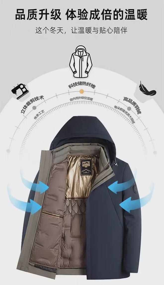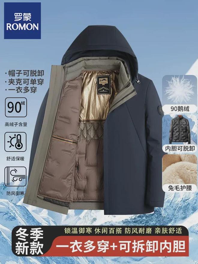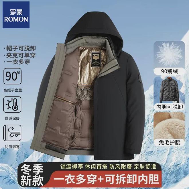 所以这次,咱们直接拿下了国民男装品牌——【罗蒙90白鹅绒冬季加绒加厚羽绒服外套】,实现春秋冬三季穿搭,一件顶五件!