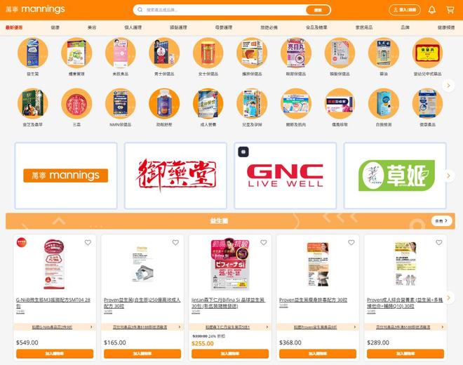 《FBeauty未来迹》对比发现,万宁港澳线上平台的商品丰富度远超内地。其网站涵盖健康、美容、个人护理等八大品类,仅"健康"一类就汇聚了御药堂、草姬等6个品牌,细分产品涵盖益生菌、眼部保健、成人营养等25个类目。这种线上资源的显著差异,进一步印证了其核心供应链与优势品类并未真正惠及内地市场,加剧了品牌定位的分化。