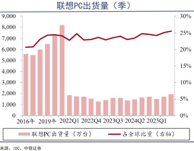 2025Q3,公司智能设备业务集团实现收入151.07亿美元,同比增长12%。其中,人工智能终端设备收入占智能设备集团整体36%,同比增长17pct。可以说,AI PC这种高利润产品,正是维持公司盈利能力领先于行业的关键。
