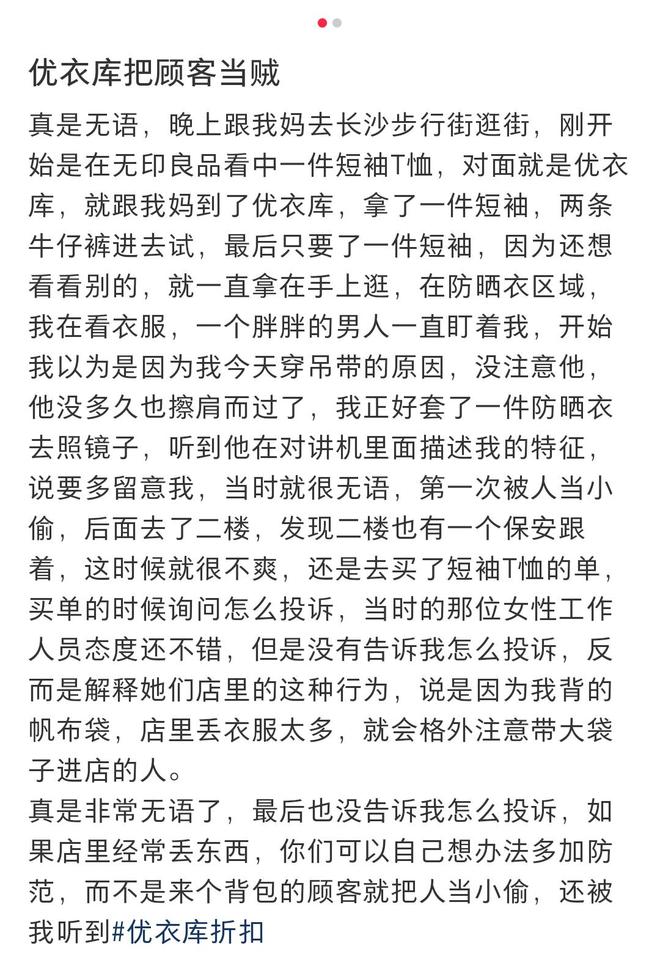《多家优衣库门店,被曝偷拍!把顾客当“小偷”;有自称员工网友表示“一眼看到谁可疑,一抓一个准”》半岛都市报