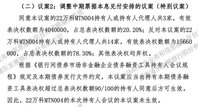 债权人针对最新议案的投票结果显示,这笔20亿元中期票据的核心展期方案仍未获得通过,但其宽限期延长方案获得了债权人批准,为后续协商争取了宝贵时间。