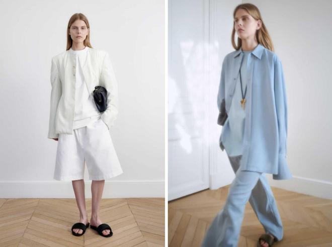 延续Carven的品牌语汇与标识。Esperanto廓形重塑为外套,以风衣、军工夹克与针织的形式呈现。睡衣融入日装,内里设计外化。云朵般的填棉覆以真丝缎面。垂坠的真丝电力纺裁作连衣裙与上衣。古董丝巾被重新构想再造为连身裙的饰边,随步履生动。通透感与内衣衬片被剖入棉质吊带裙。双面呢面料则以运动款型被探索呈现。