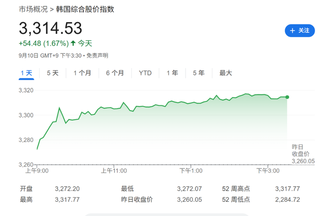 - 日经225指数收盘涨0.9%,突破8月顶点,创下收盘新高,报43837.67点。日本东证指数收涨0.6%,报3140.97点。韩国首尔综指收盘涨1.7%,创收盘历史新高,报3314.53点。