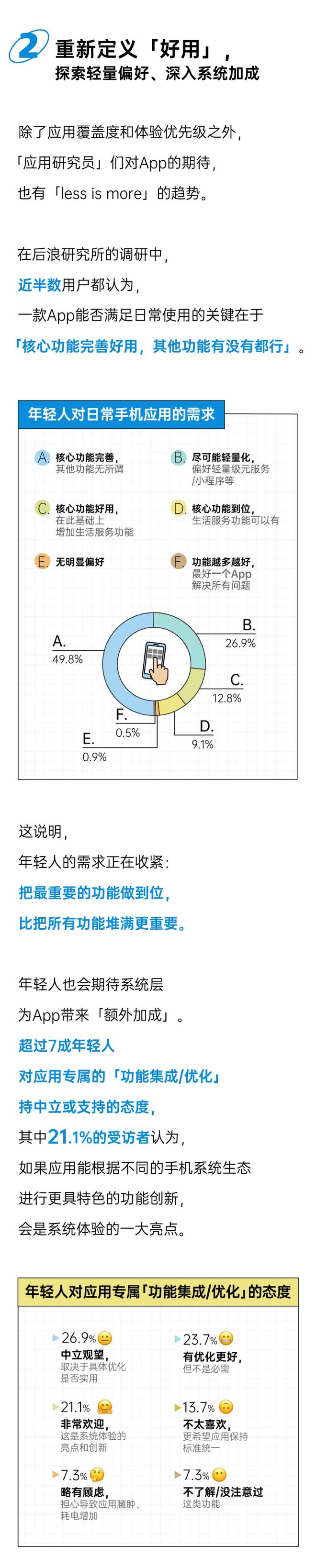 从日常的使用习惯,到对App偏好的养成,再到不同场景下对应用流畅、稳定、安全、统一体验的放大敏感——用户从最初关注「App能做什么」,慢慢转向了「App能带给我什么」。